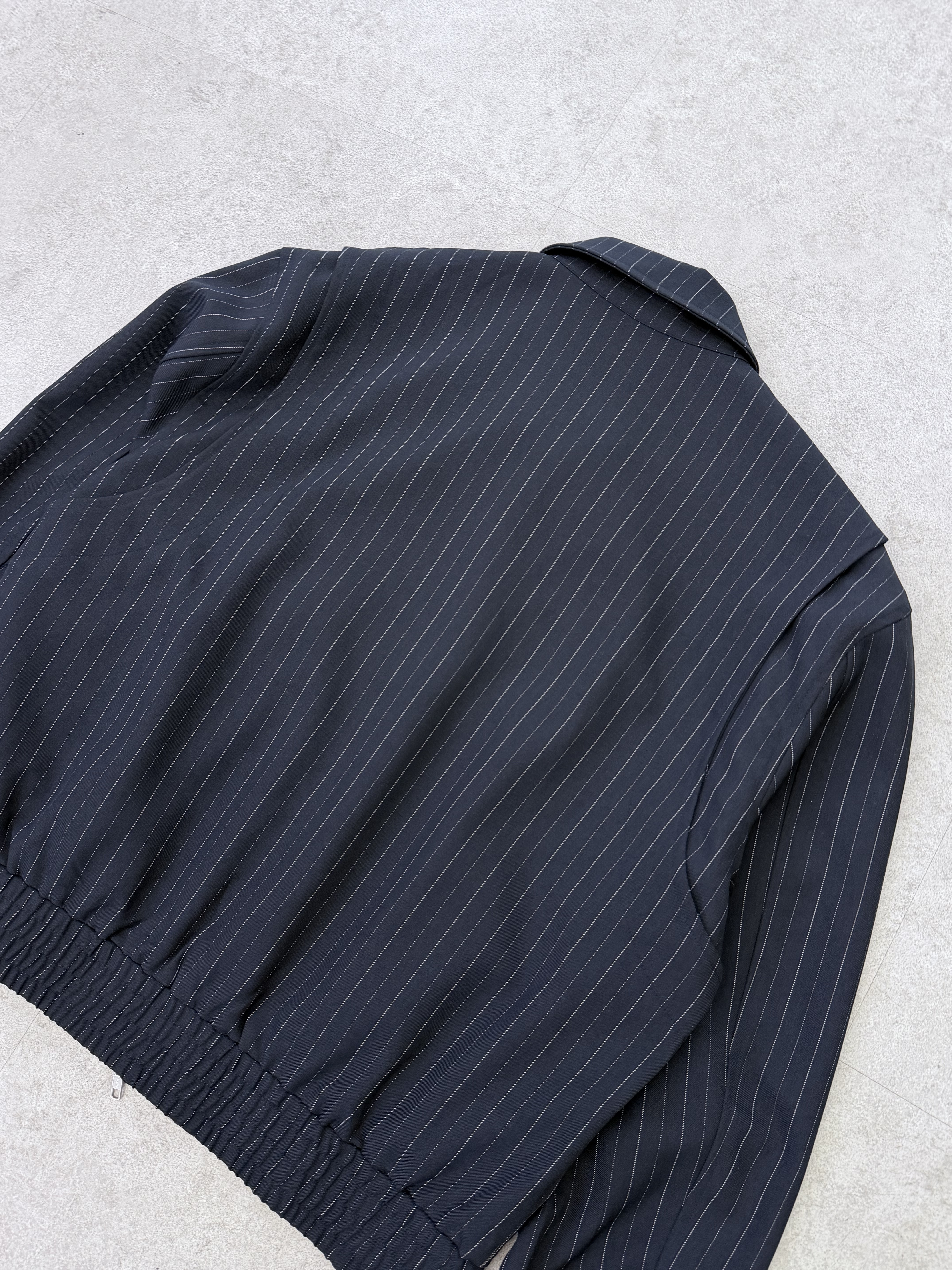 整件外套呈現「微短版+俐落肩線」的效果——