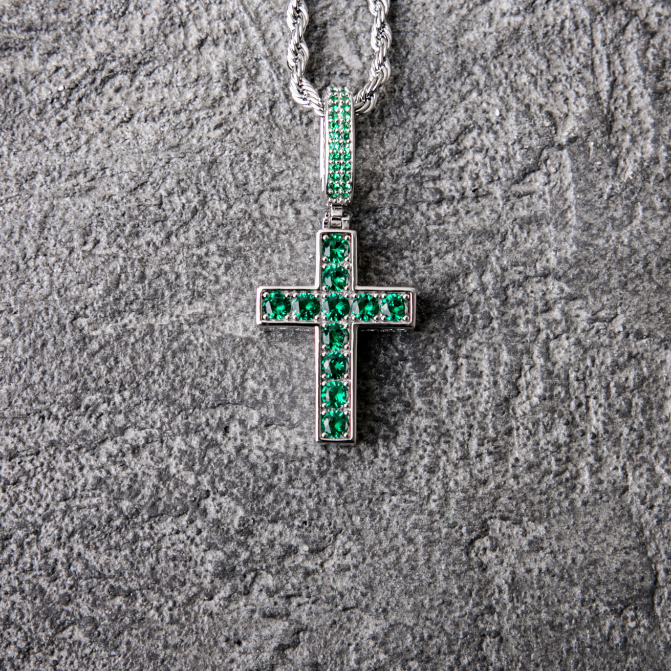 此款十字架為一面綠鋯石,一面藍鋯石,可依自己喜好選擇正反面配戴。