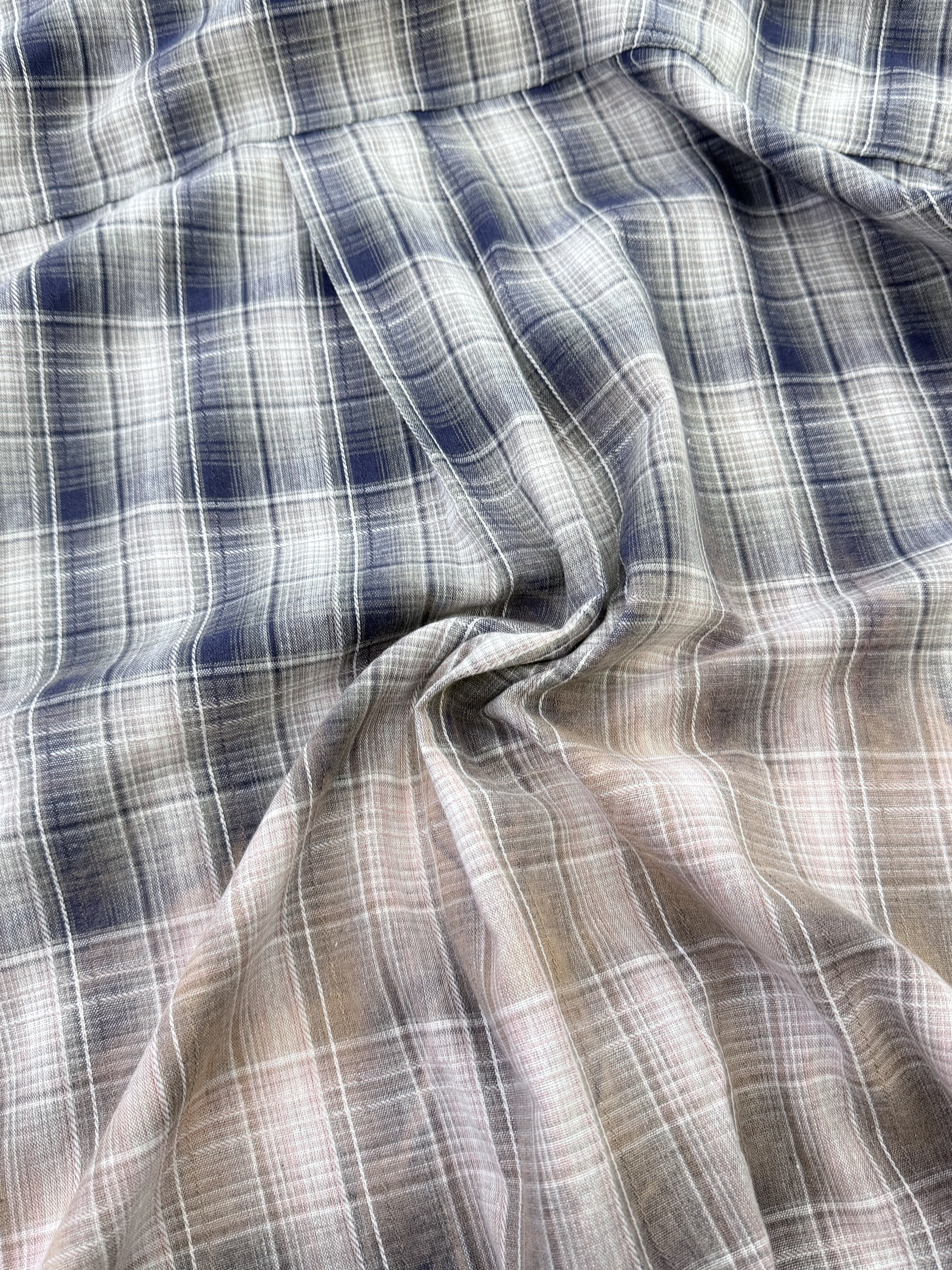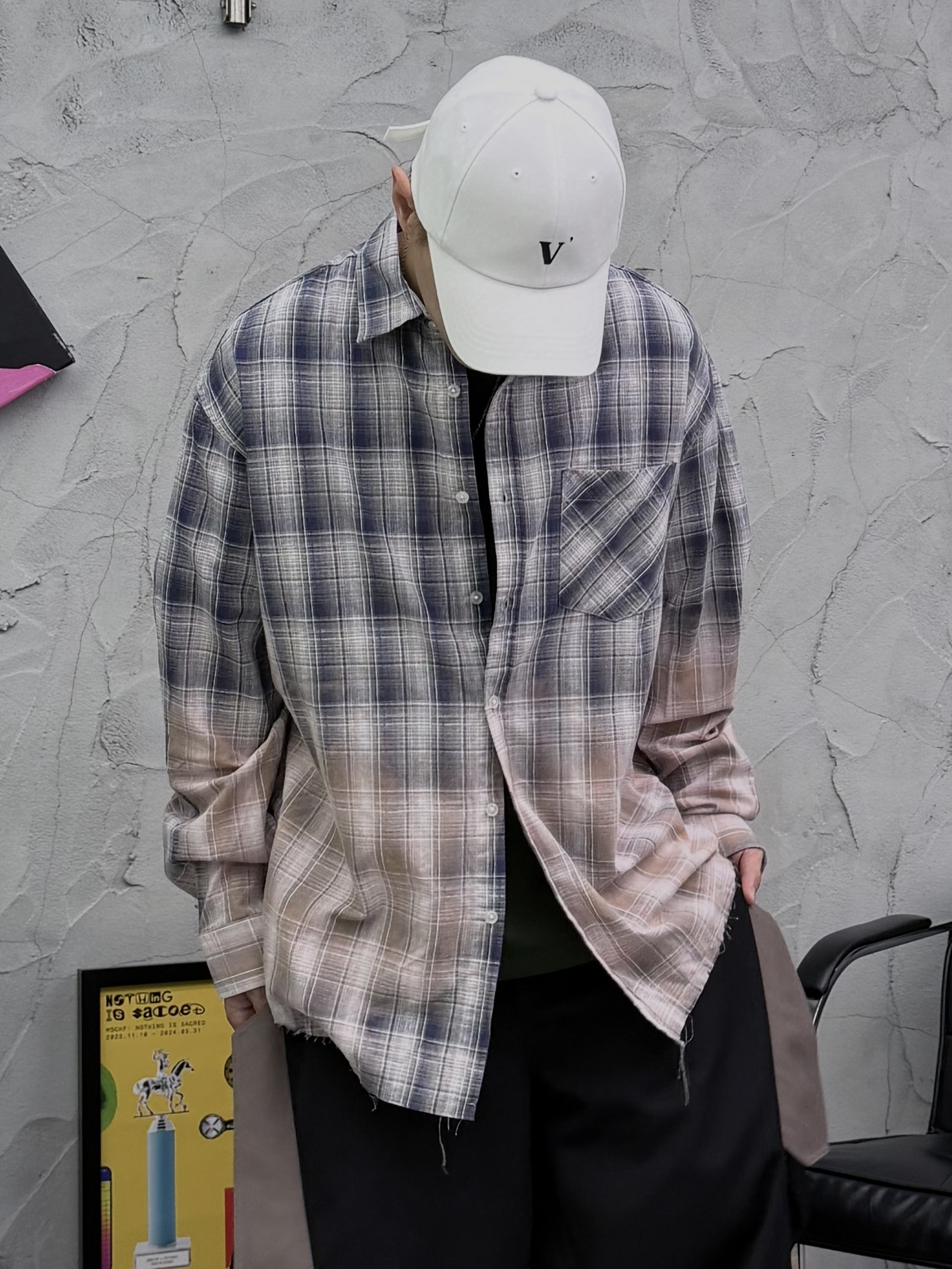 漸層格紋襯衫以細膩的色階染製工藝呈現出低調卻富層次的色感。